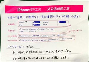 本日はiPhone7の画面、バッテリー同時修理のお客様からいただいたお声をご紹介します!!