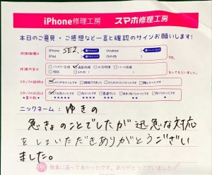 本日はiPhoneSE2の画面交換でお越しのお客様から頂いた口コミをご紹介いたします。
