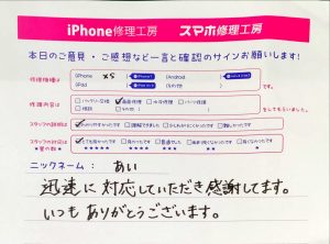 iPhone修理工房秋津店/iPhoneXSの画面交換のお客様からの口コミ