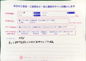 【iPhoneXのバッテリー交換でお越しのRYU様から頂いた口コミ】