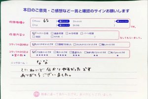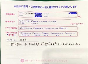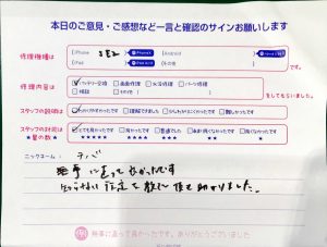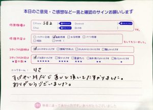 【iPhoneSE2の画面交換でお越しのりさ様へのスタッフのコメント】