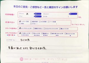 【iPhoneXのバッテリー交換でお越しのひじかた様から頂いた口コミ】