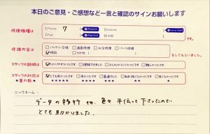 本日はiPhone7のバッテリー交換でお越しのお客様からいただいた口コミを紹介します。