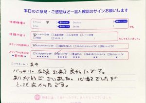 【iPhone7のバッテリー交換でお越しのあき様から頂いた口コミ】