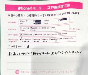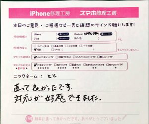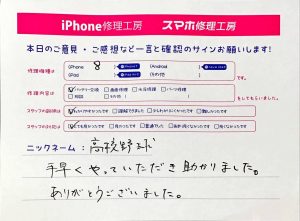 本日はiPhone8のバッテリー交換でお越しのお客様からいただいたお声をご紹介します!!
