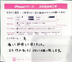 本日はiPhone7のバッテリー交換でお越しのお客様からいただいた口コミを紹介します。