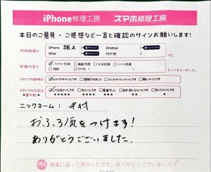 スマホ修理工房秋津店 / iPhoneSE2のバッテリー交換でお越しのお客様から頂いた口コミ