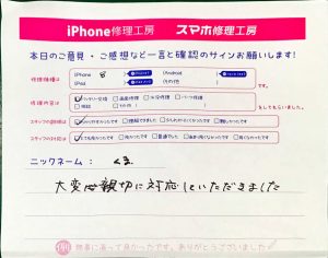 【iPhoneSE2のバッテリー交換でお越しの中村様から頂いた口コミ】