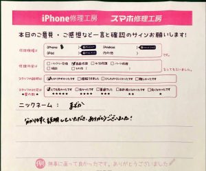 【iPhone8の画面交換でお越しのまどか様へのスタッフのコメント】
