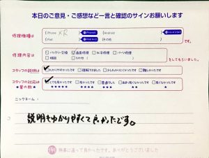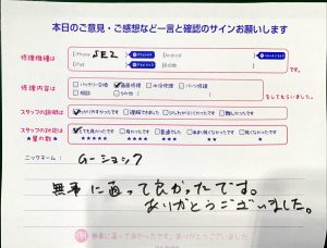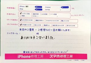 本日はiPhone6Sのバッテリー交換でお越しのお客様からいただいたお声をご紹介します!!