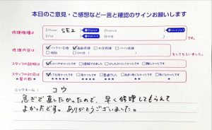 【iPhone SEの画面交換でお越しのお客様から頂いた口コミ】