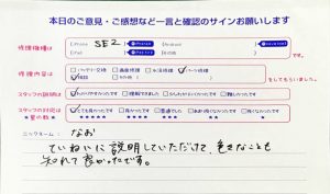 iPhone修理工房秋津店 / iPhoneSEの画面交換でお越しのお客様からいただいた口コミ