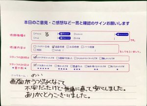 本日はiPhone8の画面修理でお越しのお客様から頂いた口コミを紹介します。