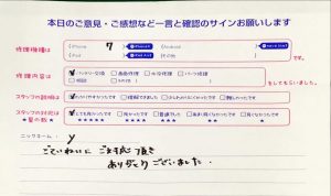 iPhone7のバッテリー交換ででお越しのお客様から頂いた口コミをご紹介します
