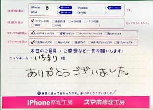 本日はiPhone8のバッテリー交換でお越しのお客様から頂いた口コミを紹介します!