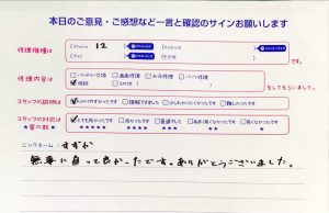 スマホ修理工房秋津店/iPhone12のご相談のお客様からの口コミ
