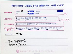 【iPhoneXのバッテリー交換でお越しのでん様から頂いたお声】