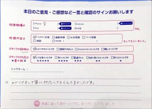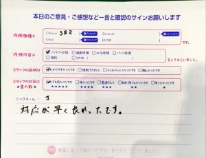 【iPhoneSE2のバッテリー交換でお越しの J 様から頂いた口コミ】