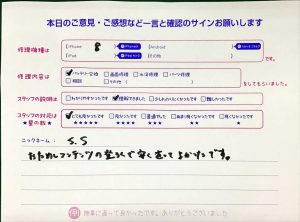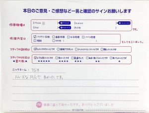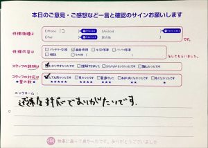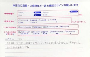 【iPhone11の画面交換でお越しのかな様へのスタッフのコメント】