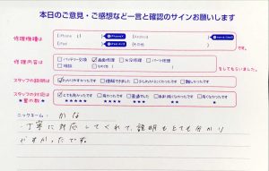 当店の修理対応にご満足して頂けて大変嬉しく思います(*^^*)