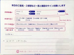 本日はiPhone8のバッテリー交換でお越しのお客様から頂いた口コミを紹介致します。