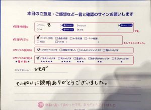 本日はiPhoneSE2のバッテリー交換でお越しのお客様から頂いた口コミを紹介します。