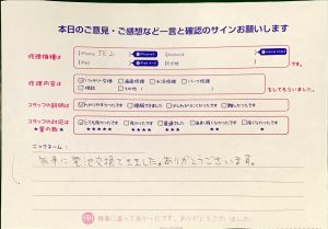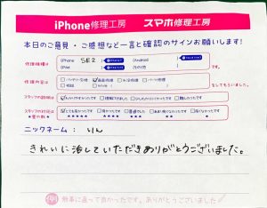 本日はiPhone SE2の画面修理でお越しのお客様から頂いた口コミをご紹介致します。