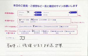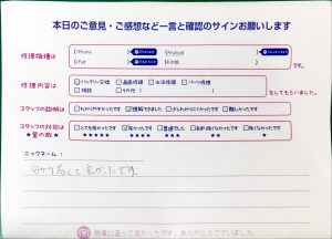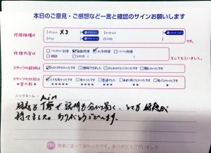 本日はiPhoneXの画面、バッテリー同時修理でお越しのお客様からいただいたお声をご紹介します!!