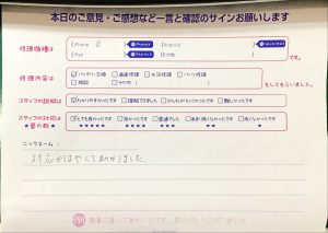 本日はiPhone8のバッテリー交換でお越しのあ様から頂いたお声をご紹介します。