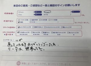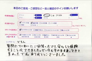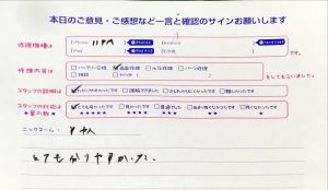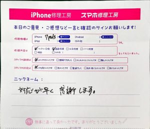 本日は、iPhone7Pのバッテリー交換でお越しの匿名希望様から頂いたお声をご紹介します