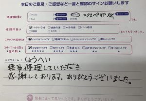 無事に修理していただき感謝しております。
