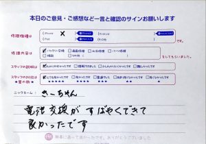 本日はiPhoneXのバッテリー交換でお越しのきーちゃん様から頂いたお声をご紹介します。