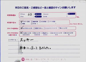 修理後、なにかお困りのことやわからないことがありましたらお気軽にお話しください!