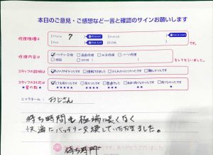 本日はiPhone7のバッテリー交換でお越しのお客様から頂いた口コミをご紹介致します。