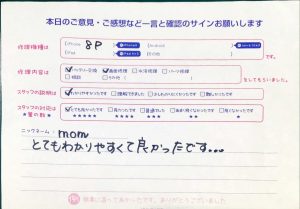 本日はiPhone8Pのバッテリー交換でお越しのお客様から頂いた口コミをご紹介いたします。