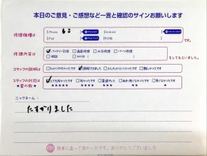 【iPhone6SPでご来店のお客様から頂いたコメント】