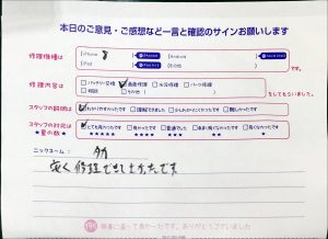 本日はiPhone7のトラブル解消でお越しのお客様からいただいたお声をご紹介します!!