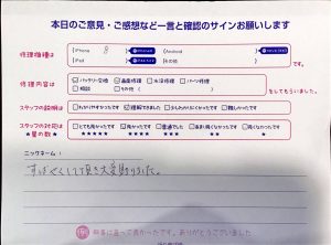 本日はiPhone6Sのバッテリー交換でお越しのお客様から頂いた口コミをご紹介します!
