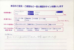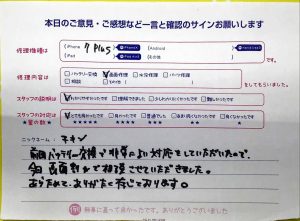 本日はiPhone7Plusのバッテリー交換でお越しのお客様からいただいたお声をご紹介します!!