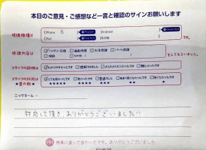 本日はiPhone8Plusのバッテリー交換でお越しのお客様からいただいたお声をご紹介します!!