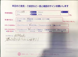 今回はiPhoneXRの画面修理でお越しいただいたお客様からの口コミを紹介いたします。