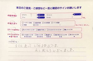 当店の修理対応にご満足していただけて嬉しく思います(*^^*)