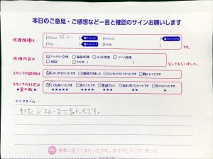 本日はiPhone SE2のバッテリー交換でお越しのお客様から頂いた口コミをご紹介致します。