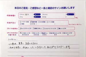 いつ来ても素早く対応してくださりわかりやすい説明いただいてありがとうございます。