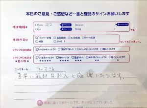 スマホ修理工房秋津店・iPhoneSE2のバッテリー修理でお越しのお客様からいただいたお言葉
