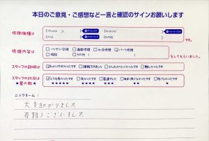 本日はiPhoneXの充電口交換でお越しのお客様からいただいたお声をご紹介します!!