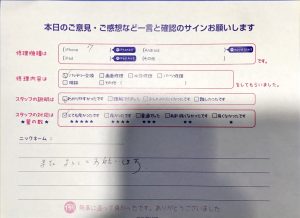 今回はiPhone7のバッテリー交換でお越しのお客様からの口コミを紹介いたします。