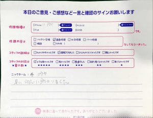 本日はiPhone8のバッテリー交換でお越しのお客様から頂いた口コミをご紹介致します。