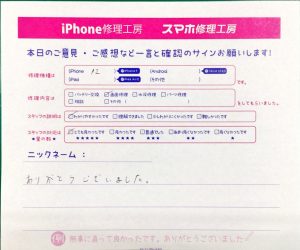 この度はiPhone修理工房秋津店をご利用いただきまして誠にありがとうございます。