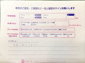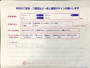 修理いただきありがとうございました。